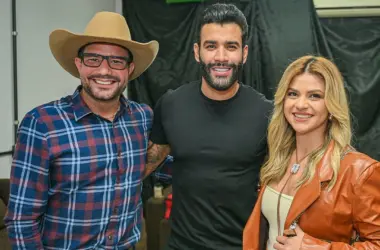 O cantor Gusttavo Lima recebeu a visita do governador do Acre, Gladson Cameli, e de sua namorada, a empresária e influenciadora digital Karol Queiroz, na