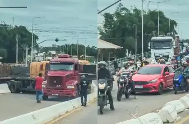 Um caminhão ficou preso em um dos acessos à Quarta Ponte, em Rio Branco, na tarde desta terça-feira (1). O incidente deixou veículos congestionados no