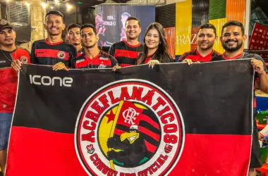 Torcedores do Flamengo se reúnem em um evento promovido pela Acreflanáticos, consulado oficial do clube carioca no Acre, na noite desta segunda-feira (16), em Rio