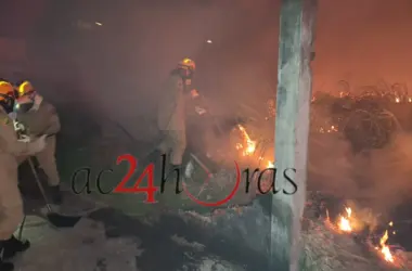 Um incêndio de grandes proporções mobilizou o Corpo de Bombeiros na noite desse sábado (14), após atingir um terreno baldio localizado na rua Floriano Peixoto,