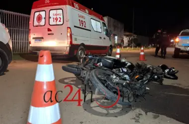 Dois motociclistas ficaram feridos após uma colisão frontal registrada na noite desse sábado (14), na Travessa Coelho, no bairro Recanto dos Buritis, região do Segundo
