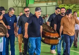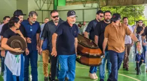 Sob forte chuva, o cortejo fúnebre com o corpo do pecuarista e empresário Betão deixou o Ginásio do Sesc, em Rio Branco, no fim da