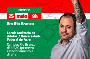 O deputado federal Glauber Braga (PSOL/RJ) estará em Rio Branco no próximo domingo (25), em busca de apoio popular para enfrentar um processo que pode