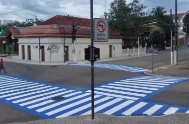 A Prefeitura de Rio Branco iniciou a revitalização de faixas de pedestres com pintura nas cores azul e branca em pontos estratégicos da capital. A