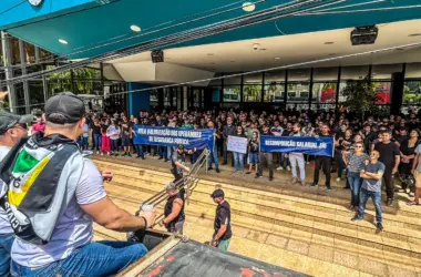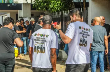 Policiais civis, militares, penais e bombeiros militares realizam nesta terça-feira (13) uma manifestação em frente à Casa Civil, no centro de Rio Branco. O ato