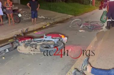 Um acidente de trânsito envolvendo uma moto e uma bicicleta deixou Elves da Silva Nascimento, de 35 anos, e Carlos Pai Machado, de 51, feridos