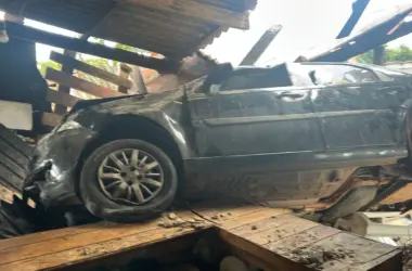 Um carro invadiu uma churrascaria que estava em pleno funcionamento na manhã desta quarta-feira, 7, por volta das 11h, nas proximidades do Campo do Calafate,