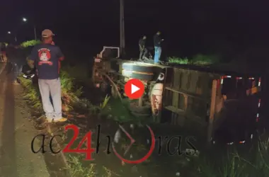 Um caminhão boiadeiro tombou no final da tarde desta segunda-feira (21) e deixou o motorista, identificado como Daniel, com escoriações leves. O acidente ocorreu na