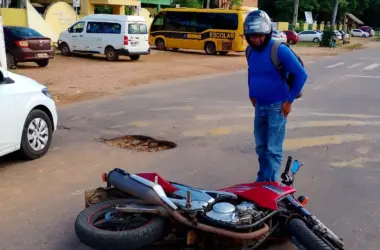 Um motociclista se feriu ao cair em um buraco na Estrada Alberto Torres, em Rio Branco. O acidente aconteceu na manhã desta quinta-feira, 10, por