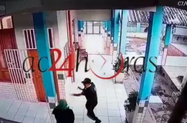 Imagens do sistema de segurança da Escola Municipal Maria Raimundo Balbino, no bairro Palheiral, em Rio Branco, registraram o assassinato do vigilante Raimundo de Assis
