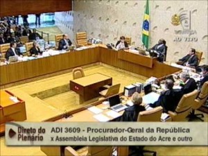 O presidente do Supremo Tribunal Federal, ministro Joaquim Barbosa, ironizou o Estado do Acre enquanto o ministro Dias Toffoli, relator da ADI 3609, destacava a