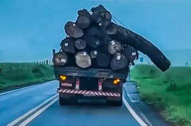 A Polícia Rodoviária Federal no Acre compartilhou nesta quinta-feira (20) o momento em que uma guarnição flagra um caminhão carregado com toras de madeira com