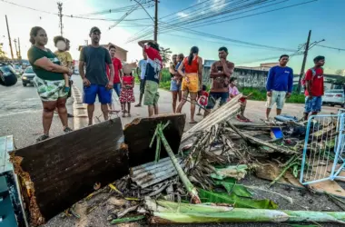 Moradores de uma área de invasão no bairro Portal da Amazônia, em Rio Branco, fecharam a estrada do Calafate no fim da tarde desta segunda-feira