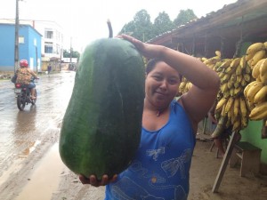 No município de Tarauacá, conhecido pelo tamanho dos abacaxis que produz, os agricultores encontraram um pepino gigante, que pesa 17 quilos e é um dos