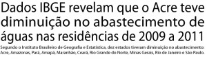As regiões Norte e Sudeste do país tiveram queda no percentual de domicílios atendidos por abastecimento de água entre 2009 e 2011. Segundo o Instituto