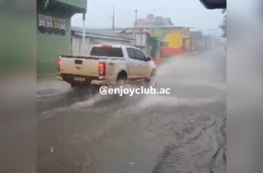 As fortes chuvas que atingiram Rio Branco nesta sexta-feira, 21, causaram alagamentos em diferentes pontos da cidade. Dois registros chamaram atenção nas redes sociais e