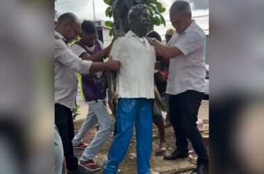 A estátua do líder seringueiro Chico Mendes, vandalizada no mês passado, foi recolocada na manhã desta quarta-feira (19) em seu local de origem, a Praça