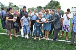 Moradores foram presenteados com a entrega da 1ª quadra pública de grama sintética no Acre. A prefeitura de Senador Guiomard preparou na manhã desta segunda