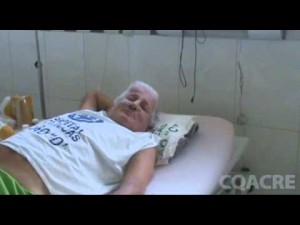 O senhor Adolar Gilberto, que sofre há quatro anos de enfisema pulmonar, pediu para gravar uma mensagem de alerta para quem fuma. Internado no Hospital