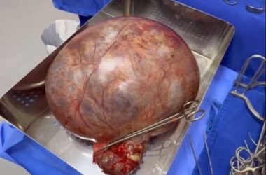 Um cisto de quase 8kg foi retirado do ovário de uma paciente pelo médico cirurgião José Ricarte, no Acre, que compartilhou trechos da cirurgia em