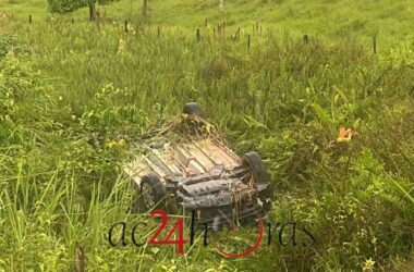 Um motorista ainda não identificado perdeu o controle do veículo e capotou às margens da rodovia AC-10, na altura do quilômetro 14, Estrada de Porto