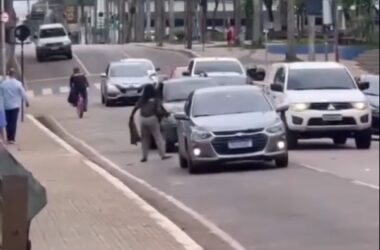 Uma situação incomum chamou a atenção de pedestres e motoristas no centro de Rio Branco nesta quinta-feira (13). Uma mulher, visivelmente alterada, foi flagrada no