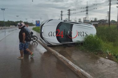 Um grave acidente de trânsito resultou no capotamento de um veículo e deixou um motorista com escoriações na tarde desta terça-feira, 11, na Via Verde,