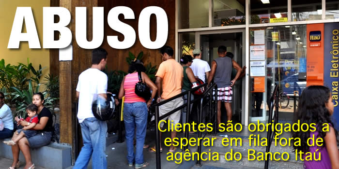 Além da longa espera para serem atendidos nas agências bancárias, os clientes do banco Itaú, agência centro, estão sendo obrigados a formarem filas fora da