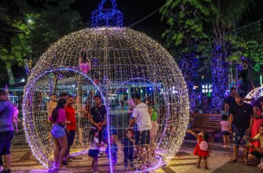 A decoração natalina na Praça da Revolução, localizada no Centro de Rio Branco, e a pista de patinação no gelo, inaugurada no dia 22 de