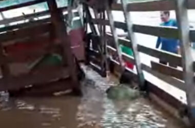 Uma embarcação carregada com canos, botijas de gás, eletrodomésticos, e com passageiros, naufragou nas águas do Rio Iaco próximo à comunidade Campo Osório, na região