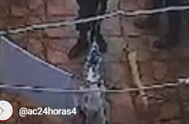 Um vídeo que circula em redes sociais nesta quinta-feira (16), mostra o minuto após a queda de um homem em surto, que caiu do telhado