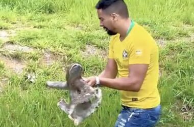 Um bicho-preguiça foi resgatado no meio da BR-364, em Rio Branco, pelo cidadão Alisson Braga. Ele percebeu o perigo que o animal enfrentava ao tentar
