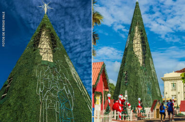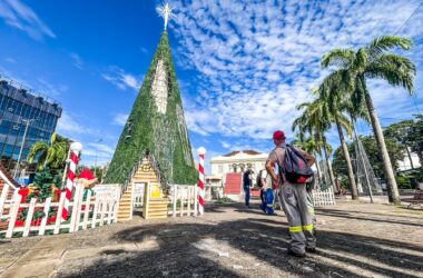 Técnicos da Secretaria de Estado de Obras Públicas do Acre – SEOP inspecionaram a árvore de Natal exibida em frente ao Palácio Rio Branco, no