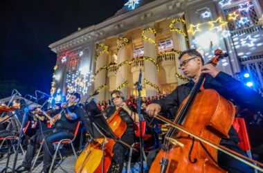 A tradicional Cantata de Natal, promovida pelo Governo do Estado do Acre, encantou milhares de pessoas na noite desta segunda-feira, 16, em frente ao Palácio