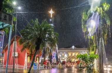 A forte chuva que atinge Rio Branco neste domingo, 15, causou atraso na solenidade de inauguração da iluminação natalina na praça do Palácio Rio Branco,