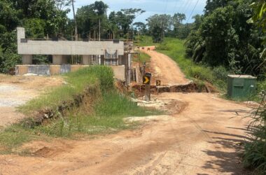 Os moradores da Estrada Jarbas Passarinho, no bairro Apolônio Sales, em Rio Branco, ficaram isolados após o desmoronamento do aterro sobre o igarapé Redenção, na