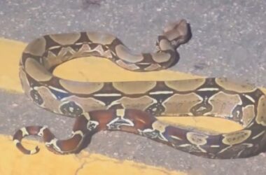 Uma serpente foi encontrada ferida na rodovia BR-317, no interior do Acre, na noite dessa sábado, 14, e acabou sendo resgatada por um militar que