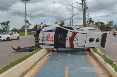 A viatura 204 da Polícia Militar do 2° Batalhão tombou e deixou o soldado Maycon da Silva Feitosa, 37 anos, e o sargento Douglas Valdemar