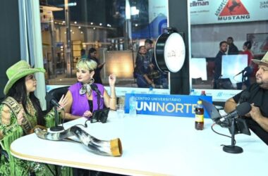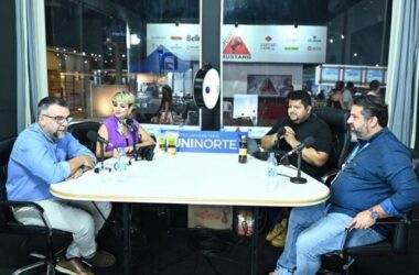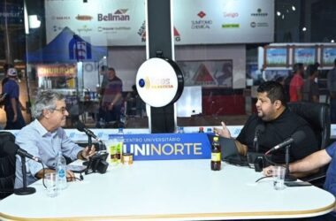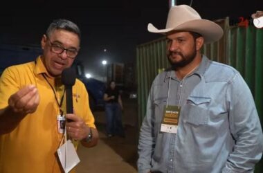 O veterinário Guilherme Viana, encarregado dos cuidados com os animais durante a Expoacre 2024, foi entrevistado pelo jornalista Leônidas Badaró na noite deste sábado (31),