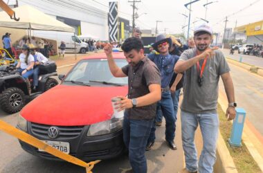 Durante a tradicional Cavalgada na Via Chico Mendes, em Rio Branco, neste sábado, 31, um veículo Saveiro de cor vermelha teve uma pane na bateria