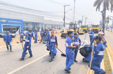 Mais de 30 garis e margaridas realizaram a limpeza das ruas por onde passaram quadriciclos e cavalos durante a Cavalgada deste ano da Expoacre 2024,