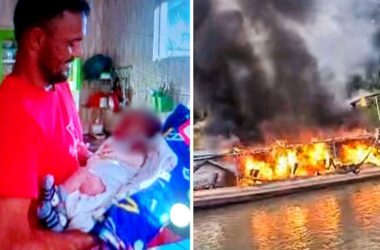 Entre os passageiros que estavam no barco que pegou fogo quando seguia para Porto Walter nessa segunda-feira, 5, estava um recém-nascido de 10 dias de