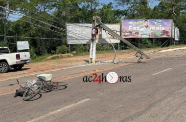 Caminhão derruba postes de energia e fere idoso em Rio Branco