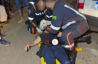 Um grave acidente de trânsito envolvendo duas motocicletas deixou Taynara Reis da Silva, de 28 anos, e um adolescente de 16 anos, feridos na noite