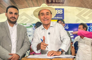 Ao lado do governador do Acre, Gladson Cameli (PP), o prefeito de Rio Branco, Tião Bocalom (PL), assinou nesta quarta-feira (3) a ordem de serviço