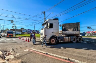 O câmbio de um caminhão quebrou na manhã desta quarta-feira, 29, e o veículo interditou parte de duas avenidas no bairro Estação Experimental, em Rio