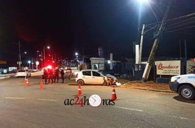 Uma colisão entre um veículo modelo Renault Sandero, de cor prata e um poste de energia deixou o motorista Manoel Ribeiro de Lima (43) com