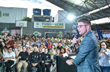 Em solenidade na quadra da Escola Doutor Mário de Oliveira, na Travessa Guaporé, no bairro Capoeira, nesta sexta-feira (5), em Rio Branco, o governador Gladson