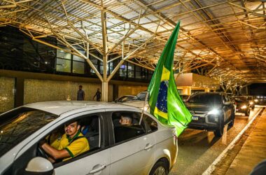 Desde o início da noite desta quinta-feira (21), apoiadores do ex-presidente Jair Bolsonaro se reúnem nos arredores do Aeroporto de Rio Branco para recebê-lo antes