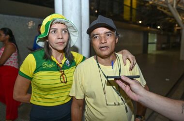 Vestidos com camisas verde e amarela, centenas de apoiadores do ex-presidente Jair Bolsonaro começaram a lotar os arredores do Aeroporto Internacional de Rio Branco na